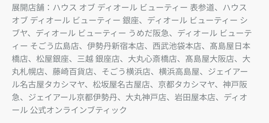 Dior(ディオール)の店舗自体は全国の百貨店や一部商業施設、路面店などありますが全ての店舗で販売があるわけではないので注意が必要です⚠️
