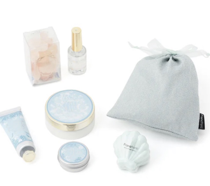 内容 | シャワージェル60ml/ ホワイトティーの香り バスペタル12g/ ローズの香り ポーチ バスソルト50g/ ラベンダーの香り ハンドクリーム5g/ フルーティーペアーの香り ディフューザー50ml/ スズラン&ムスクの香り ボディスポンジ ボディミルク60g/ グリーンティーの香り ネイルファイル(爪やすり) スターフィズ30g/ パウダリーローズの香り リップ&ボディバーム7g/ ベルガモットの香り ポーチ付きコーム S ライトパープル※限定カラー バスペタル10g/ ローズの香り 前髪クリップ ウェーブ ライトパープル※限定カラー ハンドクリーム30ml/ ベルガモットの香り ボディミスト/30ml サボンの香り シェルフィズ40g/ アクアの香り ヘアオイル60ml/ ローズの香り ハンドクリーム5g/ スイートムスクの香り 練り香水 10g/アールグレイティーの香り バスソルト90g/ ローズ&サボンの香り ボディクリーム 50ml/ローズの香り ネイルオイル9ml/ フリージアの香り(内容量:9ml) メイクアップブラシ9ml/ ライトブルー※限定カラー 合計24点入り |