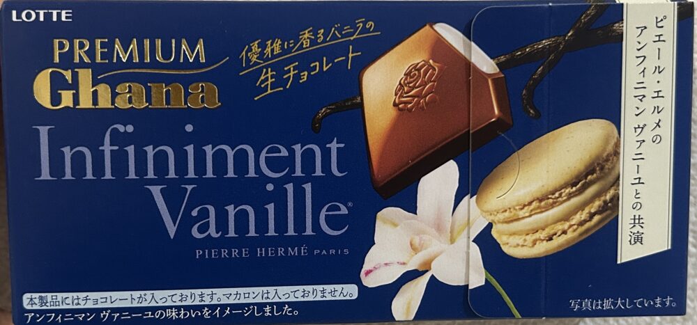ピエールエルメのアンフィニマン ヴァニーユの味わいをイメージしており、万人ウケするガーナミルクとアンフィニマン ヴァニーユがマッチします。