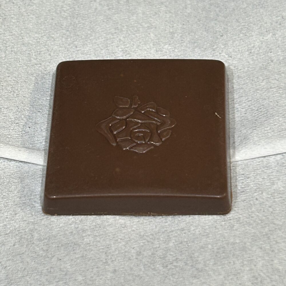 早速開けてみると四角いチョコレートの真ん中に薔薇のデザインが描かれており、何やら高級感あるチョコレート!