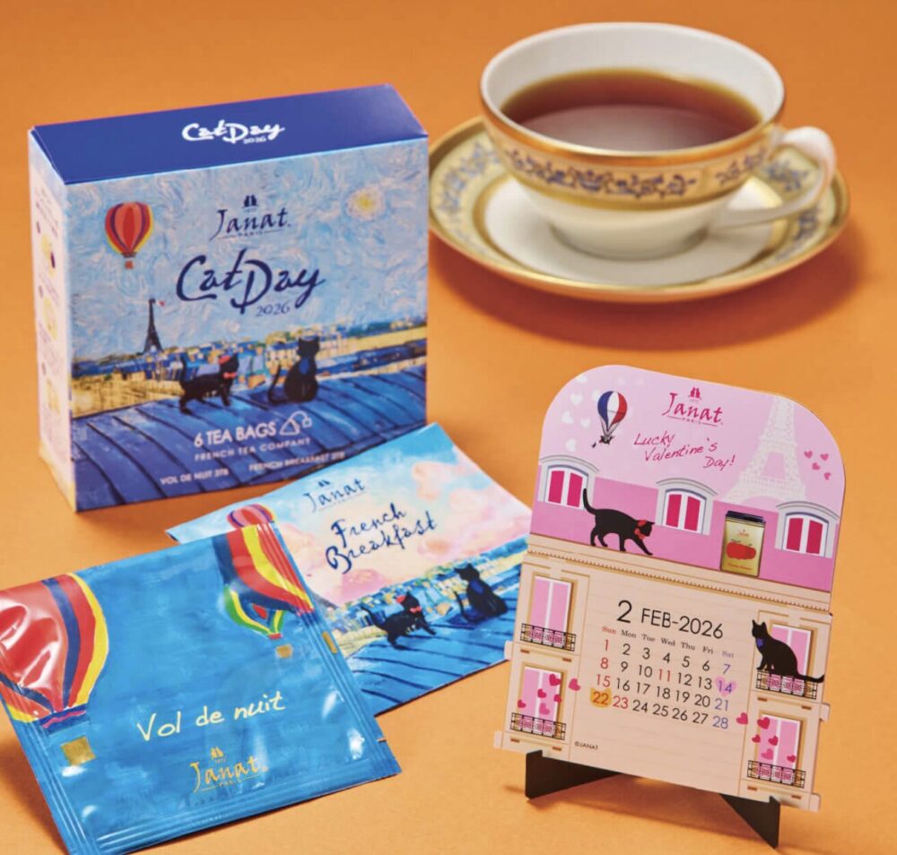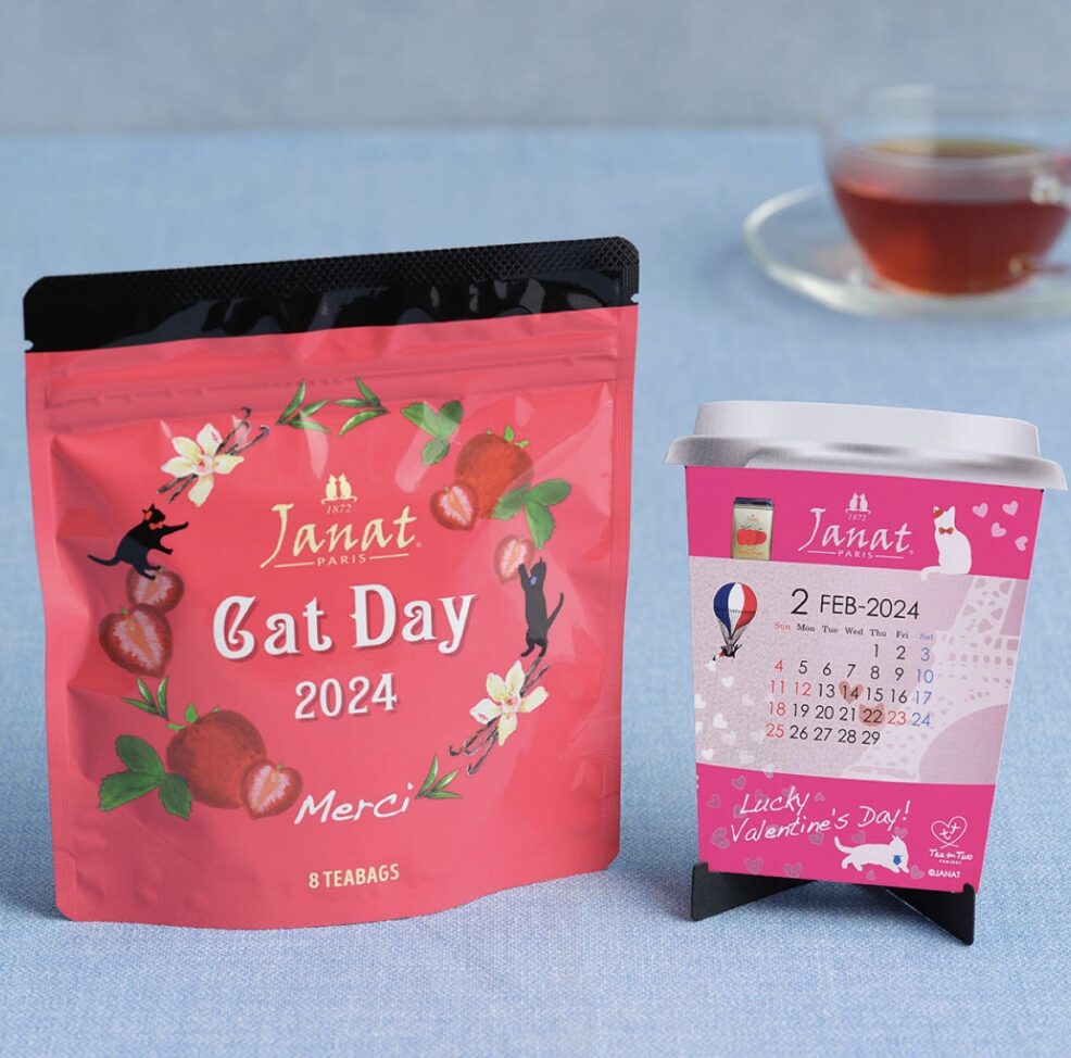 今年の猫の日バッグは2種類展開となり、それぞれ紅茶やお菓子などが猫デザインのバッグに入っています。