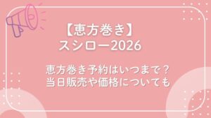 恵方巻きの予約は2026年1月4日(火)〜2月2日(月)となっており、コラボ商品販売などイベント期間は2026年1月9日(金)〜2月3日(火)となっています。
