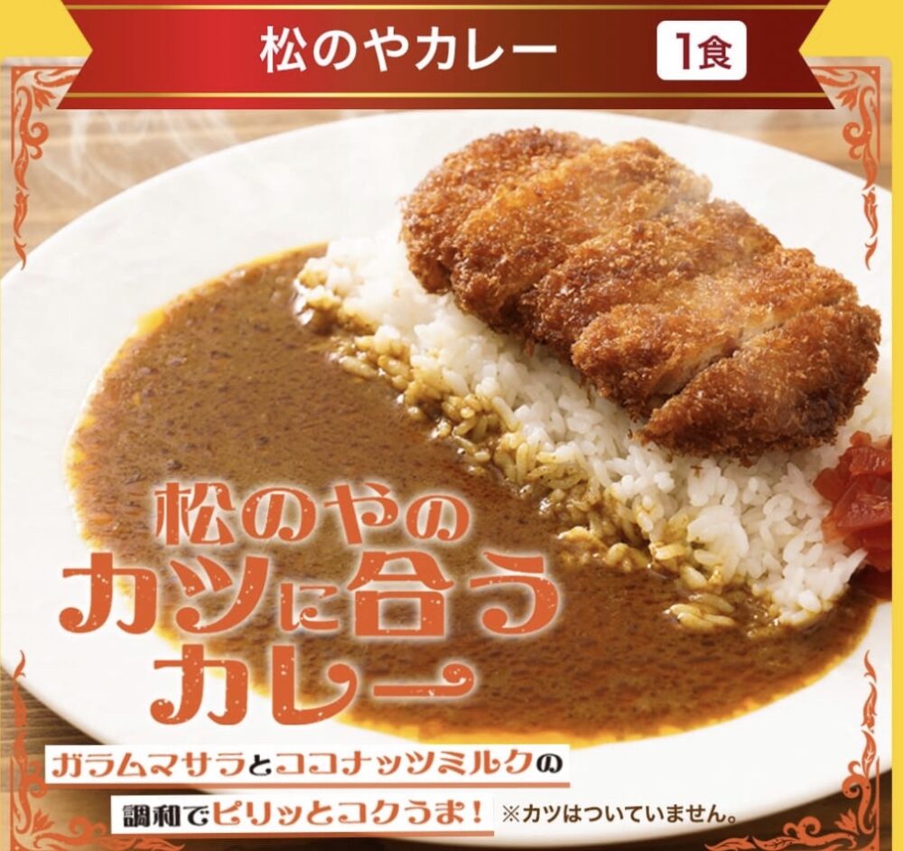 ![]() ![]() | 松のやカレー×1食 | 450円/1食 |
