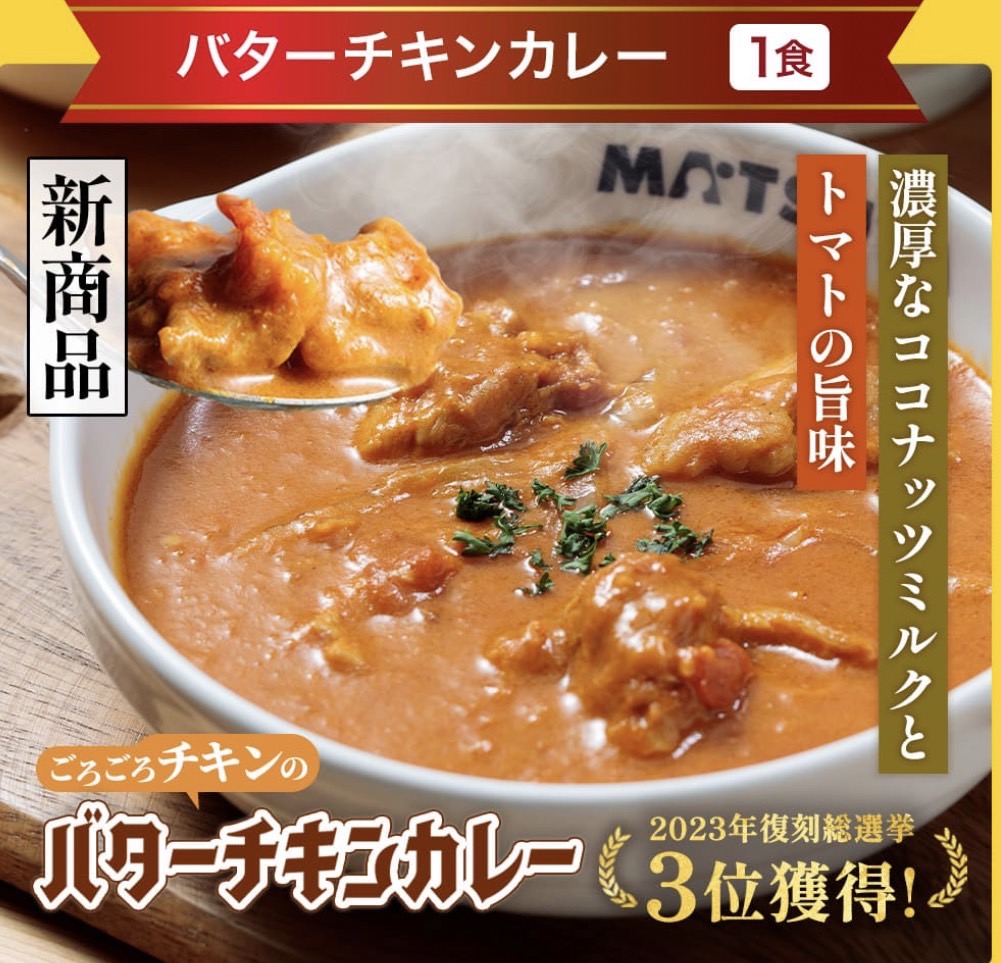![]() ![]() | バターチキンカレー×1食 | 850円/1食 |