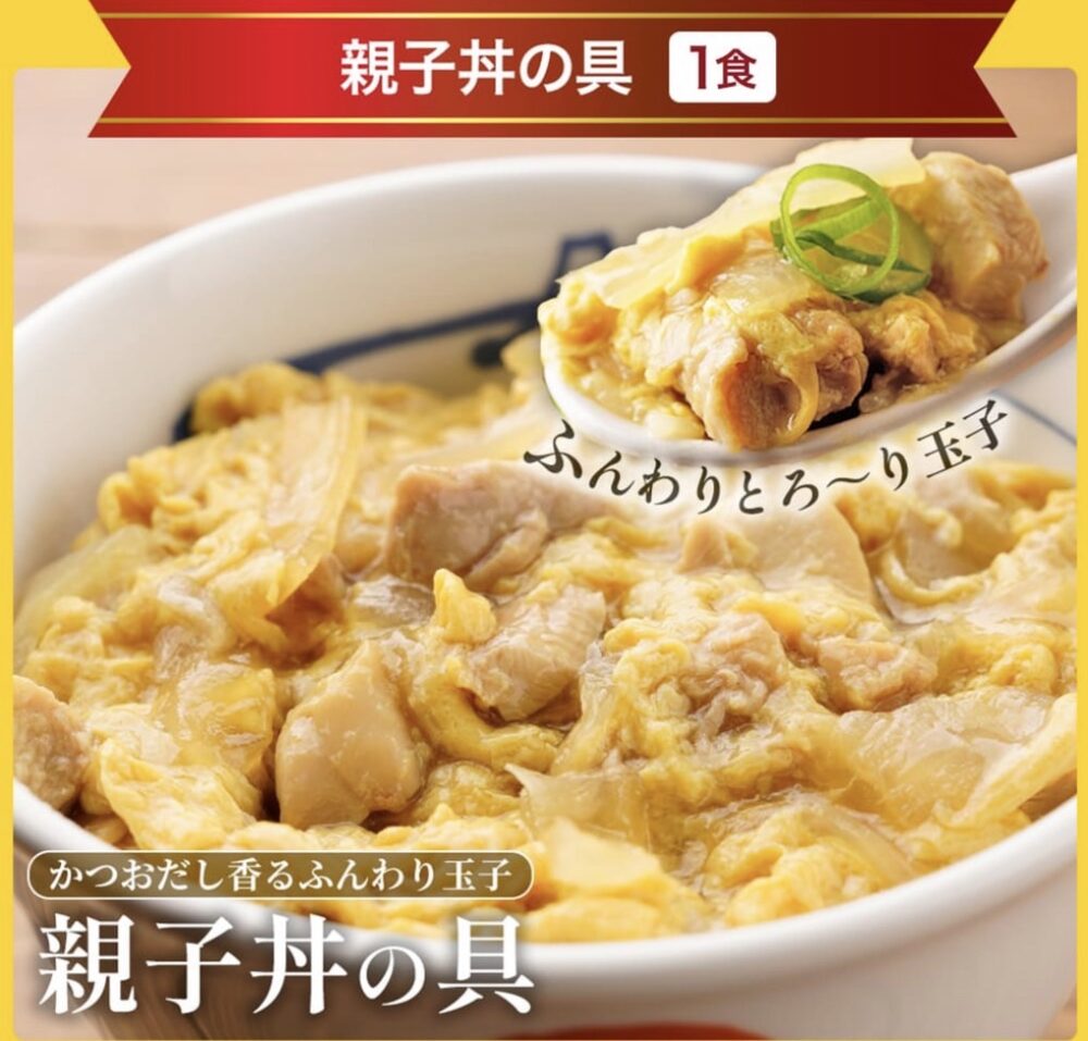 ![]() ![]() | 親子丼の具×1食 | 650円/1食 |