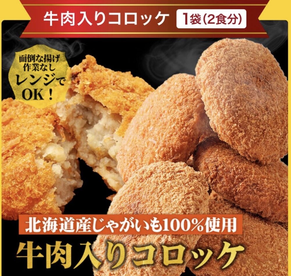 ![]() ![]() | 牛肉入りコロッケ×2食分 | 900円/1食 |