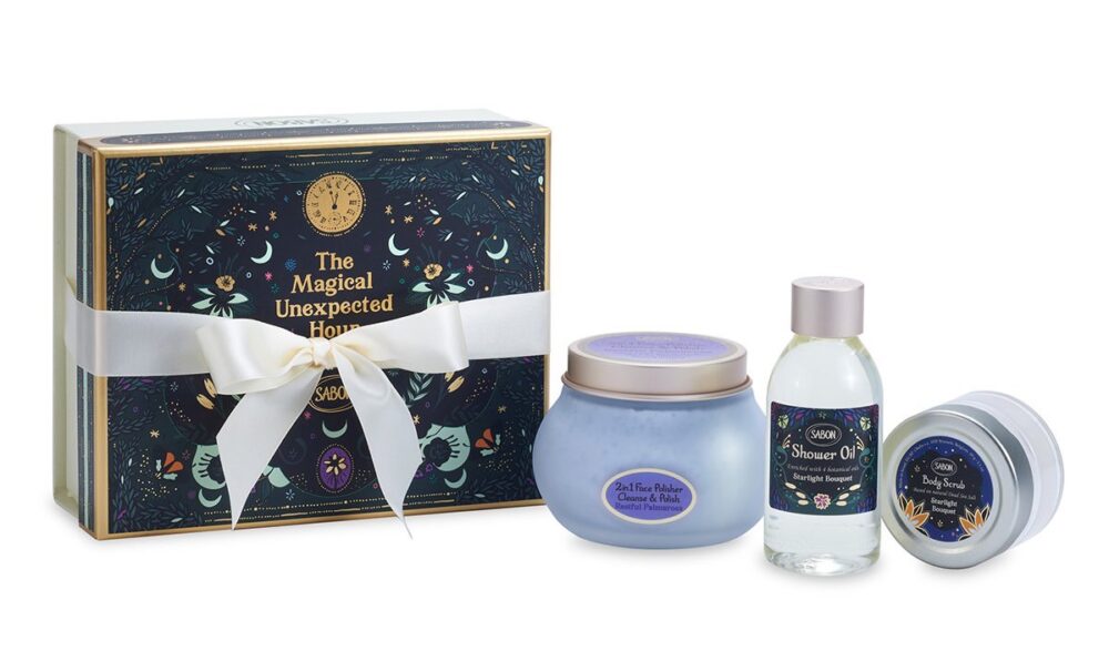 内容 | シャワーオイル スターライト・ブーケ 450ml ボディスクラブ スターライト・ブーケ 320g ボディローション スターライト・ブーケ 150ml オー ドゥ サボン スターライト・ブーケ 30ml ギフトボックス、スノーボール |