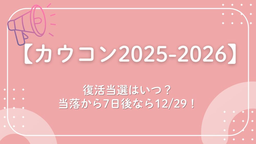 今回は3年ぶりの開催となるカウコン2025-2026の復活当選やリセール、制作開放席、一般発売や倍率についてまとめています。